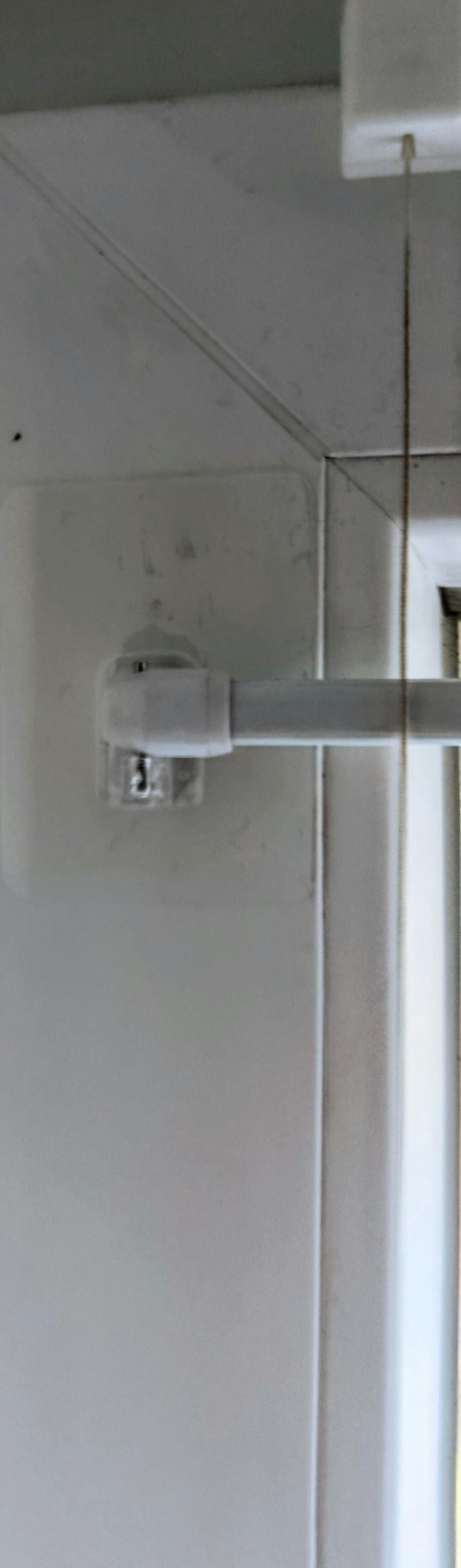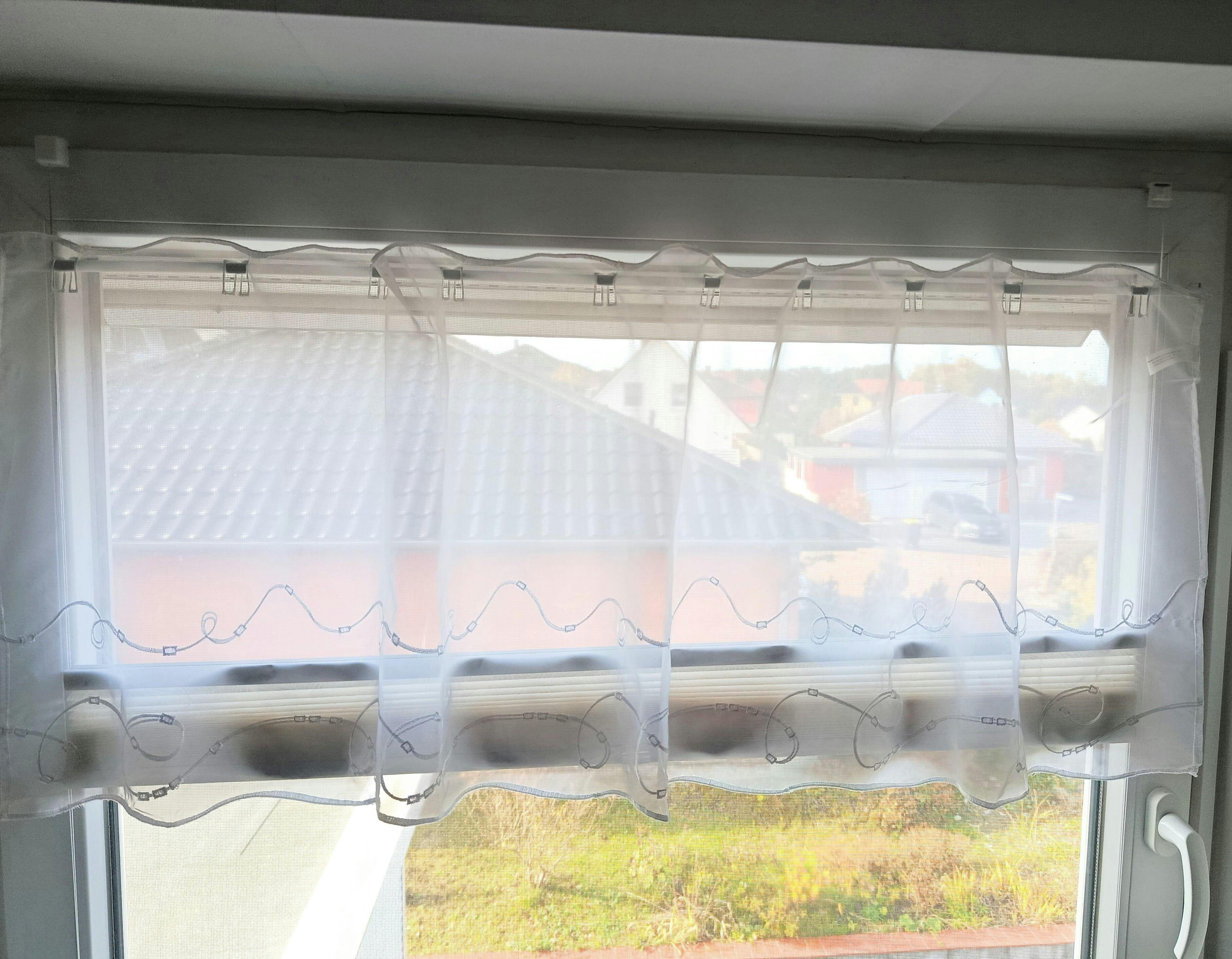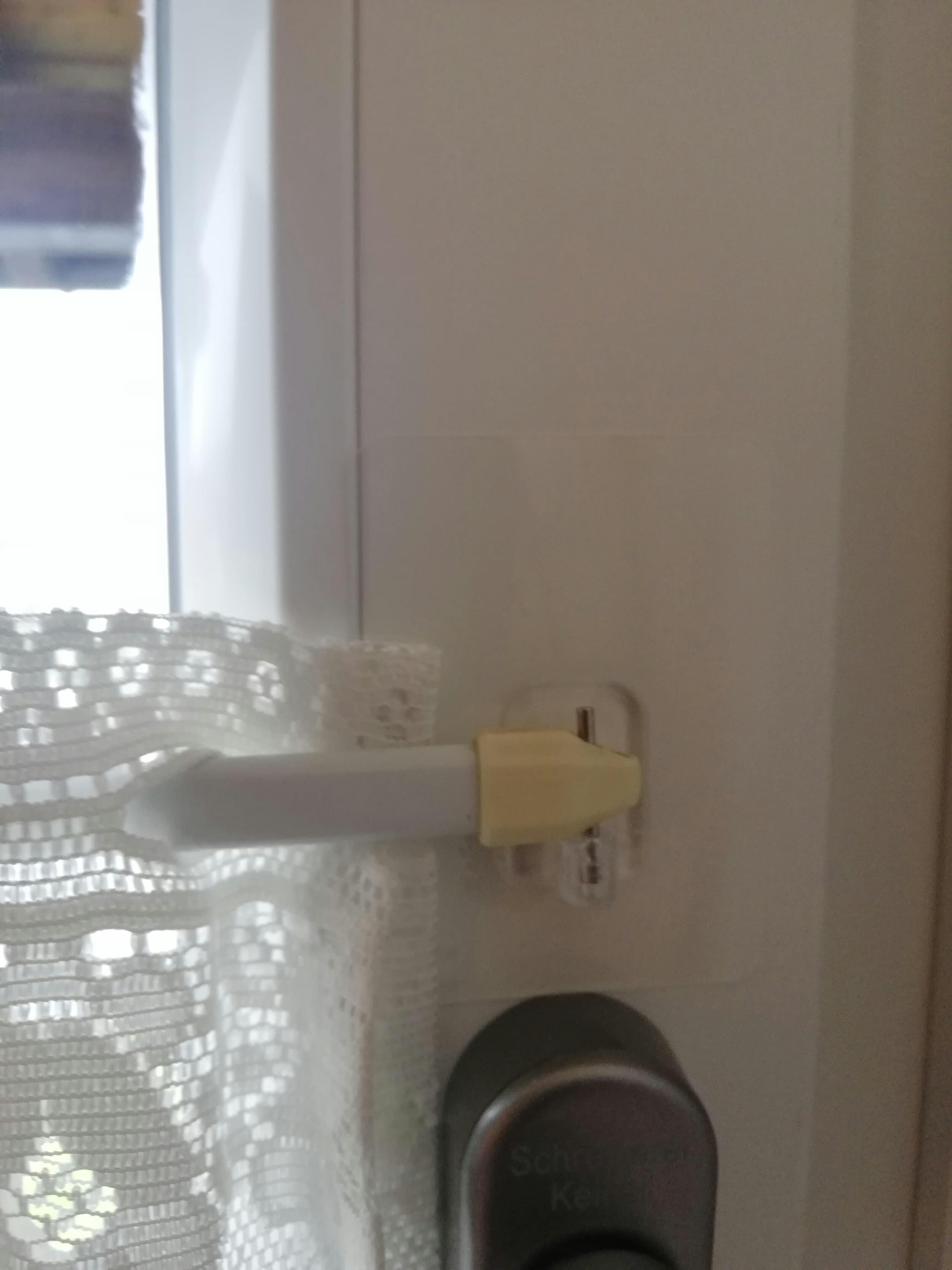 Passt op all üblech hänkeg Gardinenstangen. Gëeegent fir flaach Uewerflächen, vu glat bis liicht rau. Naturholz, ugestrach Holz oder Plastikfënstere si generell gëeegent, virausgesat datt d'Faarf stabil ass a richteg applizéiert gëtt. Fënsterrahmen aus eloxéiertem Aluminium mat raue Uewerfläche kënne problematesch sinn; eng zouverlässeg Haftung kann net ëmmer garantéiert ginn. Glat oder ugestrach Aluminiumfënstere si generell kee Problem. Fënsteren oder Fënsterrahmen grëndlech mat waarmem Waasser a Spullmëttel botzen. Holzfënsterrahmen 24 Stonnen dréchnen loossen; fir Plastik, Aluminium an ähnlech net-poréis Uewerfläche geet et duer, se einfach dréchen ze reiwen.